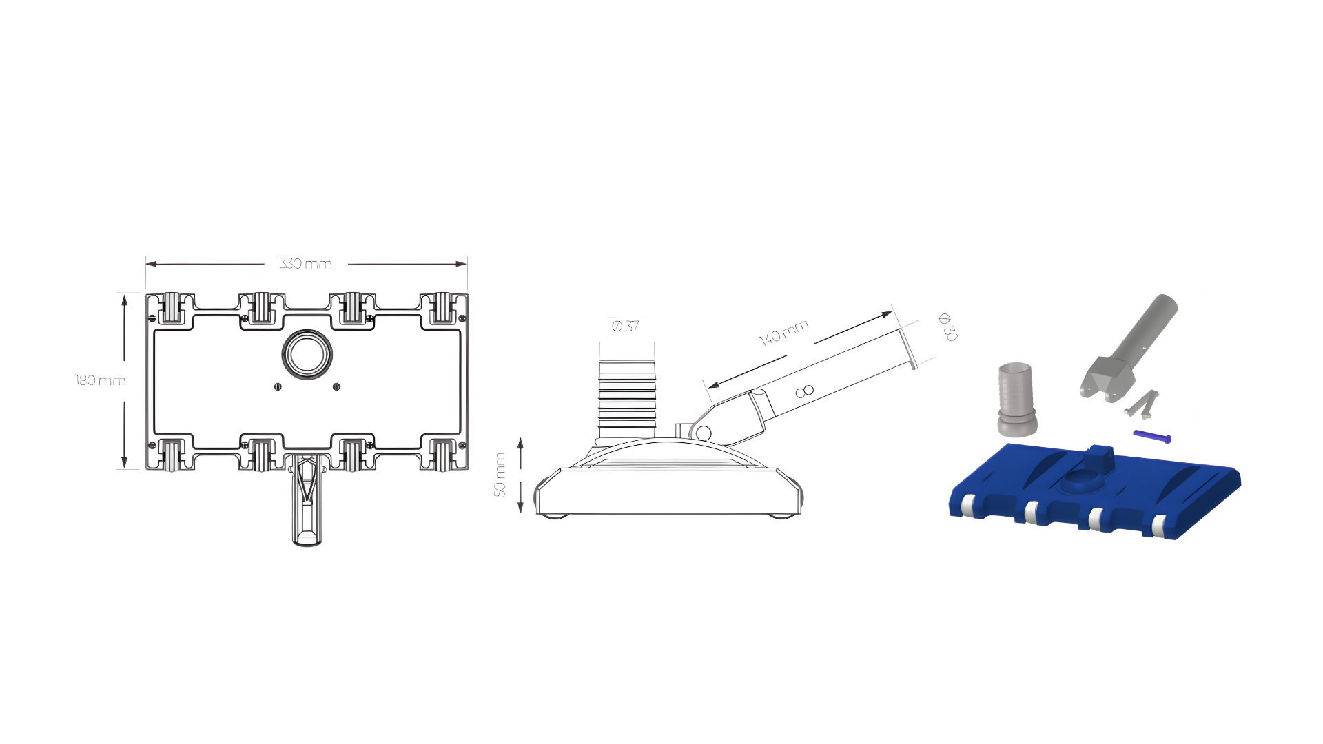 O Aspirador 8 Rodas Brustec garante limpeza prática e completa, com design resistente e rodas que deslizam suavemente para cobrir toda a piscina.