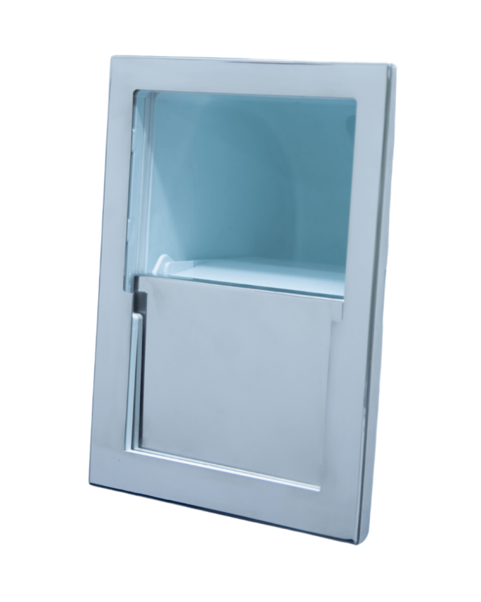 A moldura é instalada no acabamento externo do Skimmer, cobrindo o entorno do encaixe e oferecendo estética refinada à piscina. Fabricada em aço inoxidável 316L, proporciona proteção extra contra corrosão, maresia e contato constante com produtos químicos da água.