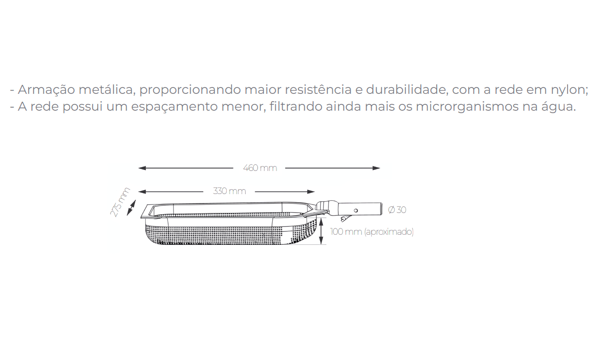A filtragem mais precisa para a sua piscina. A rede superfina de nylon aliada à armação metálica robusta captura até as menores partículas, garantindo água cristalina com máxima resistência e durabilidade.