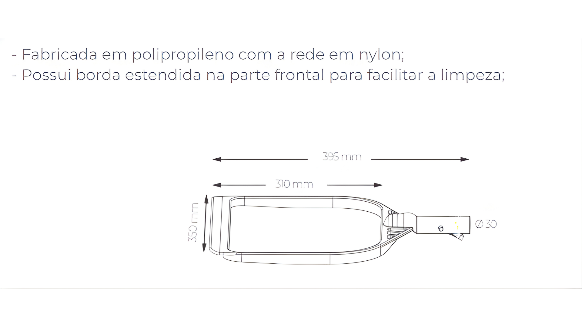 O design funcional, com bordas estendidas, facilita o alcance em cantos e curvas, otimizando a remoção de folhas, insetos e outros resíduos superficiais. O encaixe universal permite o uso com cabos telescópicos padrão, ampliando o alcance de limpeza sem esforço.