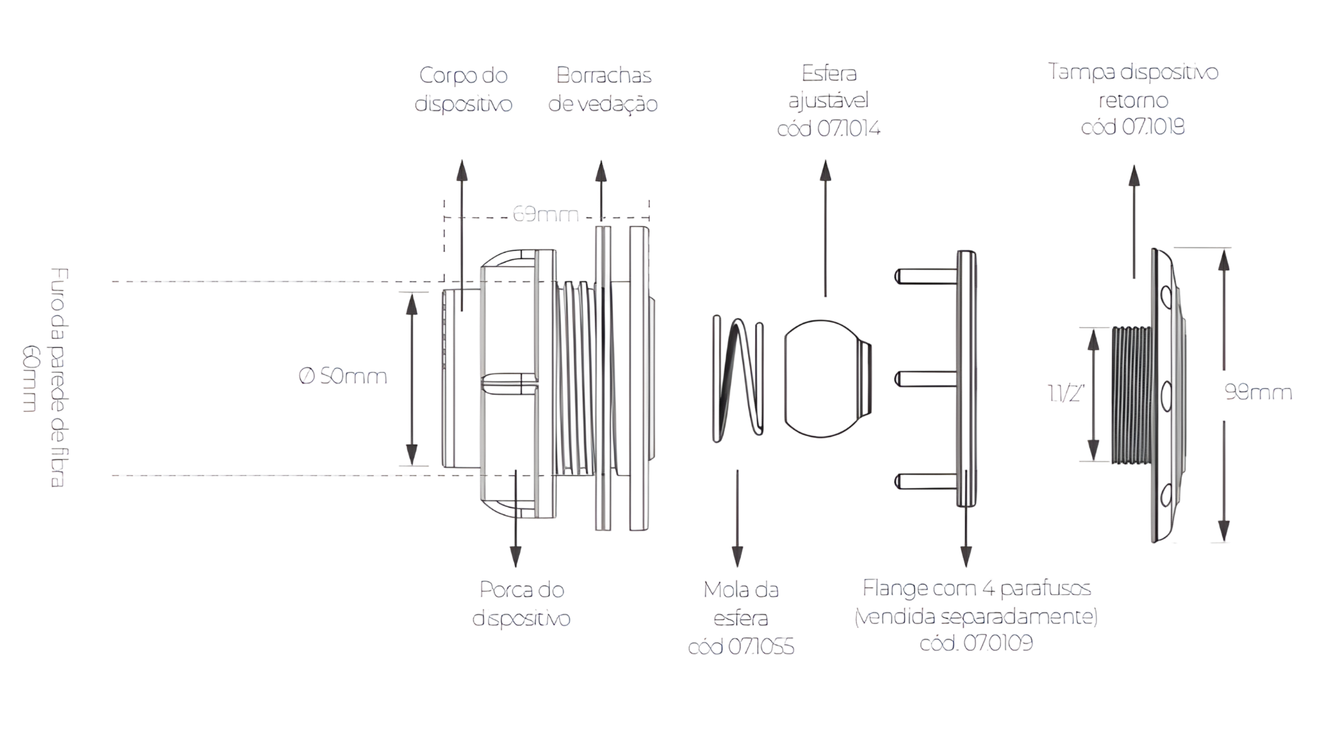 Conexão: Encaixe com rosca 1.1/2”