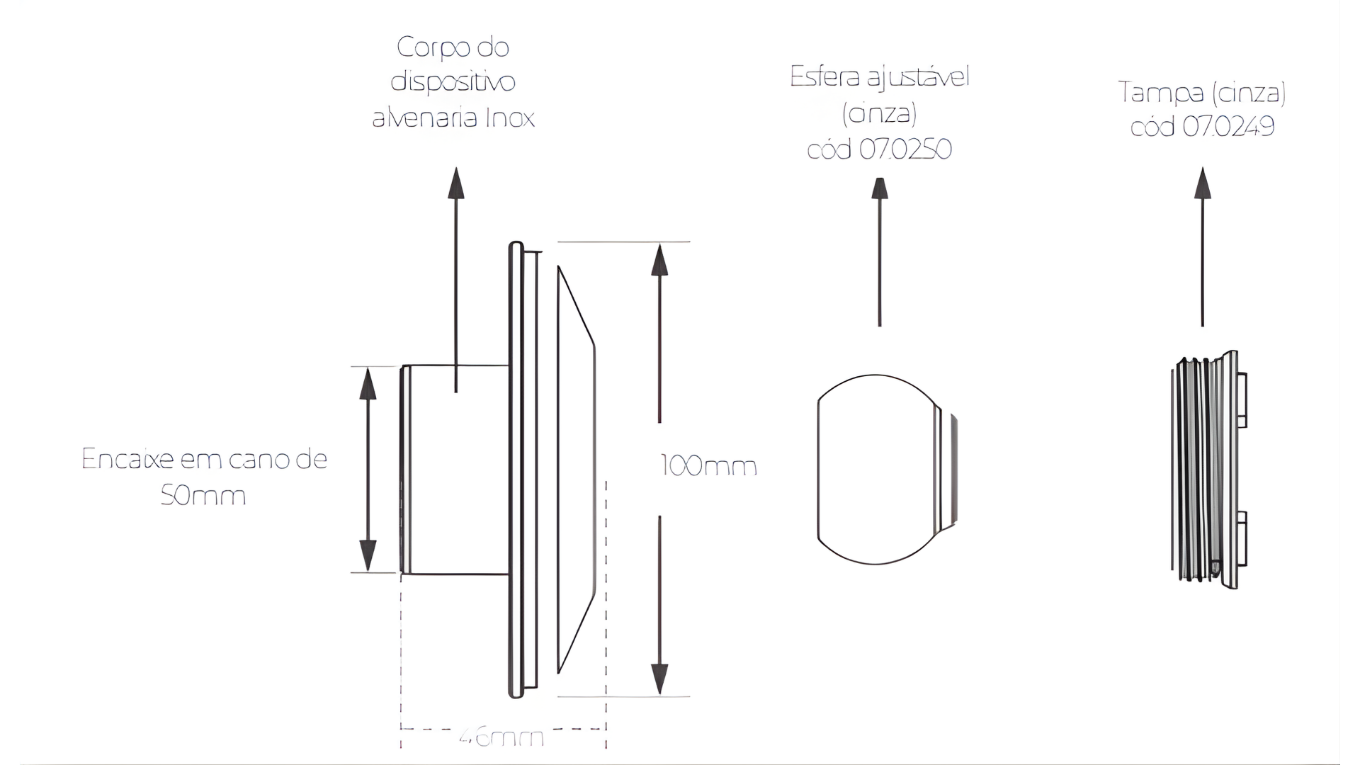 Conexão: encaixe em tubos de 50 mm (PVC marrom)