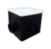 A tampa plástica com borracha de vedação garante vedação eficiente contra umidade e sujeira.