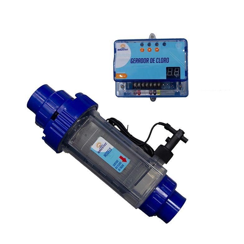 Com o Gerador de Cloro Brustec BR‑60, você automatiza a cloração da piscina de médio a grande porte: transforma sal em cloro continuamente via eletrólise, eliminando o uso manual de produtos químicos.